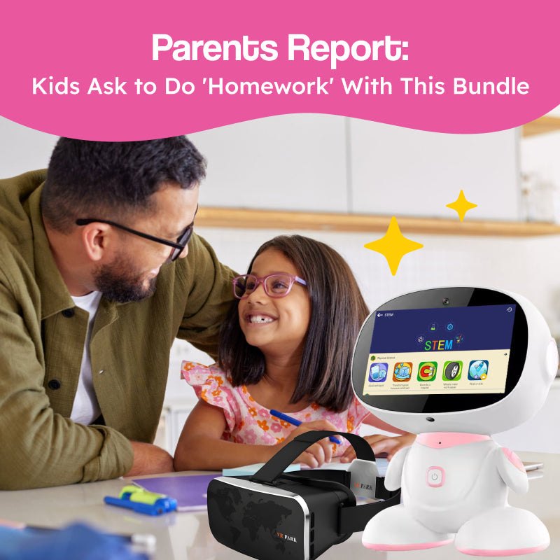 You know how kids learn best when they can touch, move, and experience things firsthand? This amazing bundle gives them exactly that! They'll get hands-on learning with an intelligent robot that talks back, then dive into immersive VR worlds where they can walk through history or explore the ocean depths.